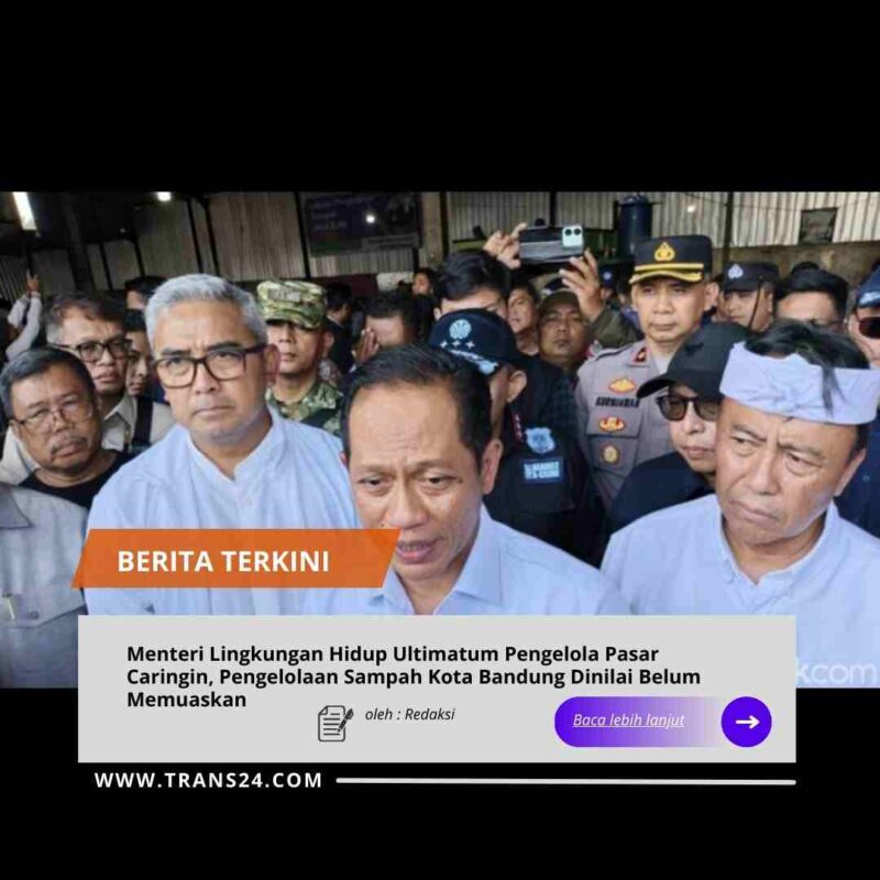 Bandung//trans24.id Menteri Lingkungan Hidup Hanif Faisol mengeluarkan ultimatum tegas kepada pengelola Pasar Caringin, Kota Bandung. Jika dalam waktu dua pekan persoalan persampahan tidak ditangani secara serius, Hanif menegaskan akan menggunakan kewenangannya untuk menjerat pengelola dengan sanksi pidana sesuai peraturan perundang-undangan.
