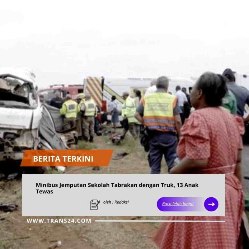 Johannesburg, // trans24.id //- Sebuah minibus yang mengangkut pelajar dalam perjalanan pagi menuju sekolah di Provinsi Gauteng, Afrika Selatan, bertabrakan dengan truk pada Senin (19/1/2026). Insiden tersebut menewaskan setidaknya 13 anak, sebagian besar masih berusia sekolah dasar dan menengah.