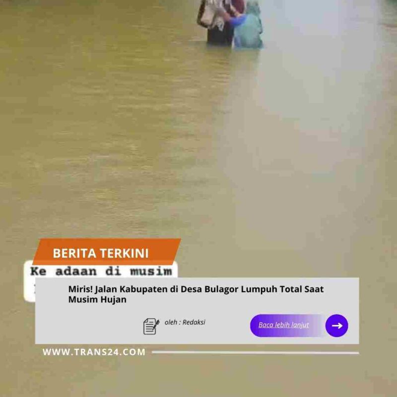 Pandeglang//trans24.id – Kondisi memprihatinkan dialami warga Desa Bulagor, Kecamatan Pagelaran, Kabupaten Pandeglang, setiap musim hujan tiba. Jalan kabupaten yang menjadi urat nadi aktivitas warga kerap terendam banjir dengan genangan air mencapai setinggi paha orang dewasa.senin (12/1/2026).