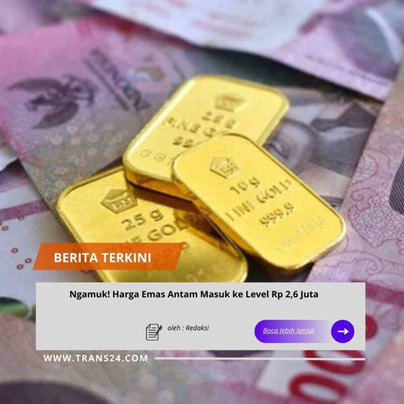 Jakarta //trans24.id arga emas Antam hari ini melonjak setelah hari sebelum menurun. Harga emas Antam 24 karat naik Rp 25.000 per gram dan berada di level Rp 2.602.000 per gram.