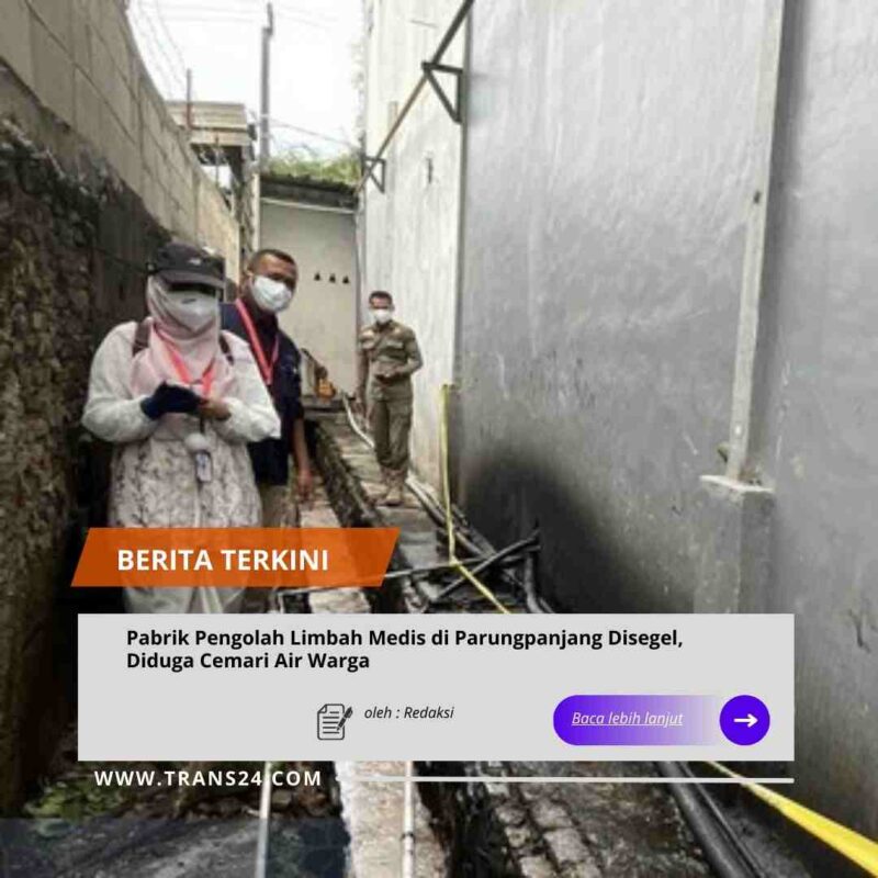 Bogor//trans24.id Dinas Lingkungan Hidup (DLH) bersama Satpol PP Kabupaten Bogor menyegel pabrik pengolahan limbah medis di Parungpanjang. Penyegelan dilakukan lantaran aktivitas pabrik tersebut mencemari air yang digunakan masyarakat.