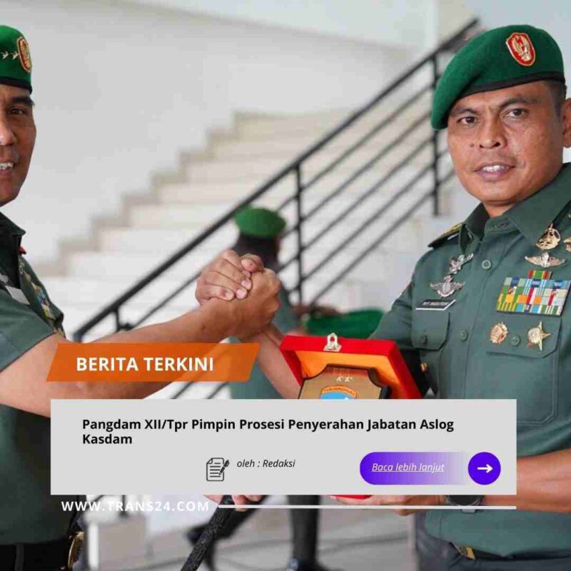 Kubu Raya, // trans24.id //- – Panglima Komando Daerah Militer (Pangdam) XII/Tanjungpura, Mayjen TNI Novi Rubadi Sugito, S.I.P., M.Si., secara resmi menerima penyerahan jabatan Asisten Logistik (Aslog) Kasdam XII/Tpr di Koridor Gedung A Makodam XII/Tpr, Kubu Raya, Senin (19/1/2026).