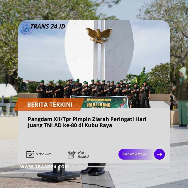 KUBU RAYA//trans24.id – Panglima Komando Daerah Militer XII/Tanjungpura, Mayjen TNI Jamallulael, S.Sos., M.Si., memimpin langsung ziarah rombongan ke Taman Makam Pahlawan (TMP) Dharma Patria Jaya, Sungai Raya, Kubu Raya, pada Kamis (11/12/2025).