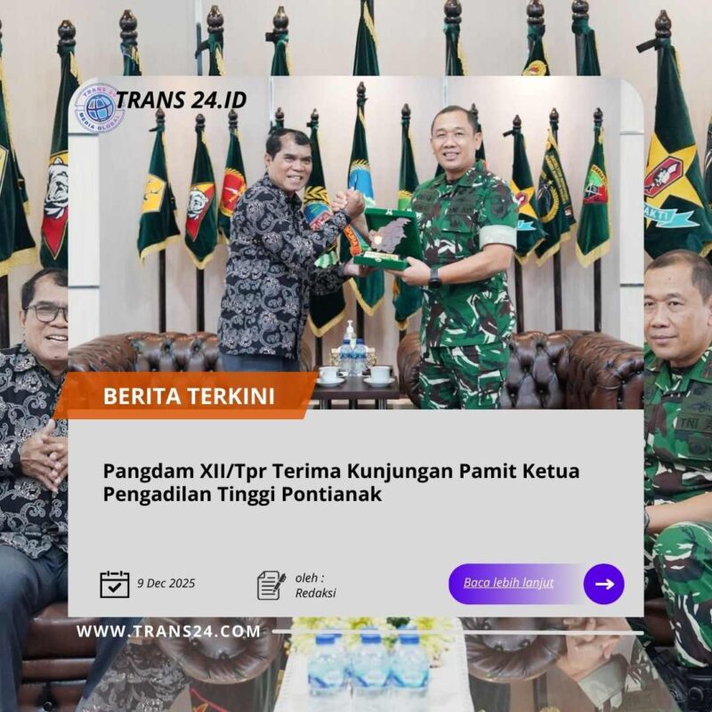 KUBU RAYA//trans24.id – Panglima Komando Daerah Militer (Pangdam) XII/Tanjungpura, Mayjen TNI Jamallulael, S.Sos., M.Si., menerima kunjungan silaturahmi perpisahan dari Ketua Pengadilan Tinggi Pontianak, F. Willem Saija, S.H., M.H., di Makodam XII/Tpr, Kubu Raya, pada Selasa (9/12/2025).