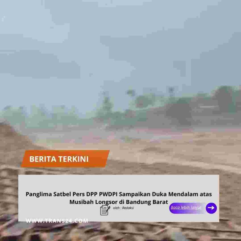 Bandung Barat, // trans24.id //— Panglima Satuan Tugas Bela Wartawan (Satbel Pers) Dewan Pimpinan Pusat (DPP) Persatuan Wartawan Duta Pena Indonesia (PWDPI), Dedi Supiandi, menyampaikan duka cita yang mendalam atas musibah bencana tanah longsor yang terjadi di Kampung Babakan Cisarua, Kabupaten Bandung Barat.