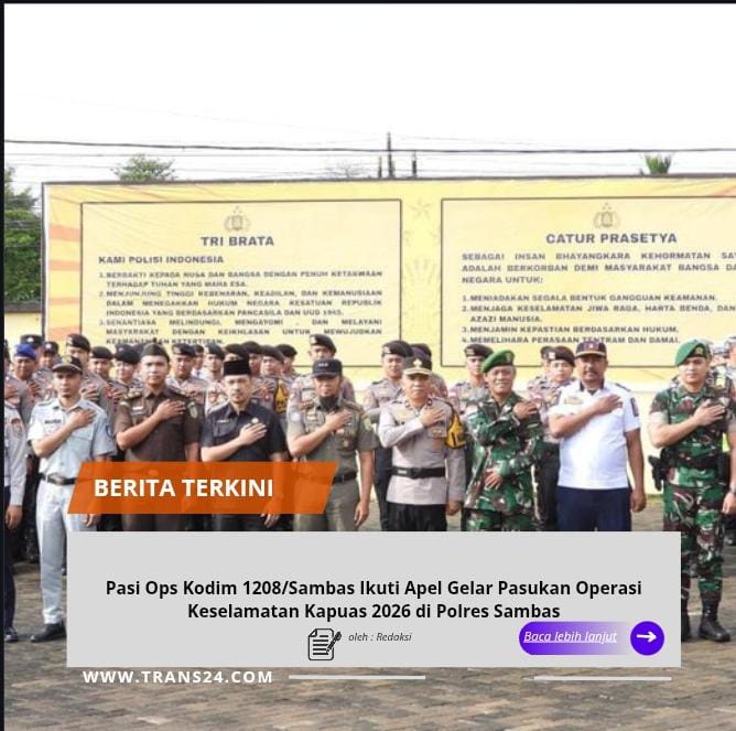 SAMBAS, // trans24.id // – Perwira Seksi Operasi (Pasi Ops) Kodim 1208/Sambas mengikuti kegiatan Apel Gelar Pasukan Operasi Keselamatan Kapuas Tahun 2026 yang dilaksanakan di halaman Mapolres Sambas, Senin (02/02/2026).