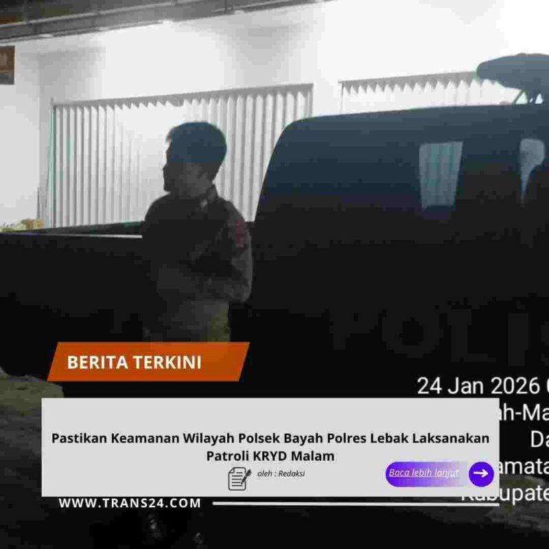 POLRES LEBAK, // trans24.id //-Guna menciptakan situasi kamtibmas yang aman kondusif Jajaran Polsek Bayah Polres Lebak Melaksanakan kegiatan patroli malam antisipasi kerawanan C3 ( Curat, Curas dan Curanmor) serta antisipasi Balap liar dan kriminalitas lainnya diwilayah kecamatan Bayah, kabupaten Lebak. Sabtu (24/01/2026)