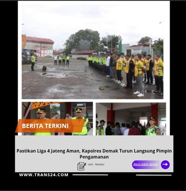 Demak, // trans24.id //– Untuk memastikan pertandingan sepak bola berjalan aman dan kondusif, Kapolres Demak AKBP Arrizal Samelino Gandasaputra memimpin langsung pengamanan laga antara PSD Demak melawan Persibat Batang pada kompetisi Grup B Liga 4 Jawa Tengah di Stadion Sultan Fatah Demak, Rabu (28/1/2026).