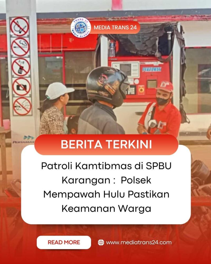 LANDAK//trans24.id – Personel Polsek Mempawah Hulu terus meningkatkan kegiatan patroli guna menjaga stabilitas kamtibmas di wilayah hukumnya. Pada Senin 01/12/2025), dua Personel Polsek Mempawah Hulu yang melaksanakan patroli kamtibmas yakni Bripka Anggi Setiawan bersama Bripka Orgen melaksanakan patroli rutin di SPBU Karangan, Kecamatan Mempawah Hulu, Kabupaten Landak.