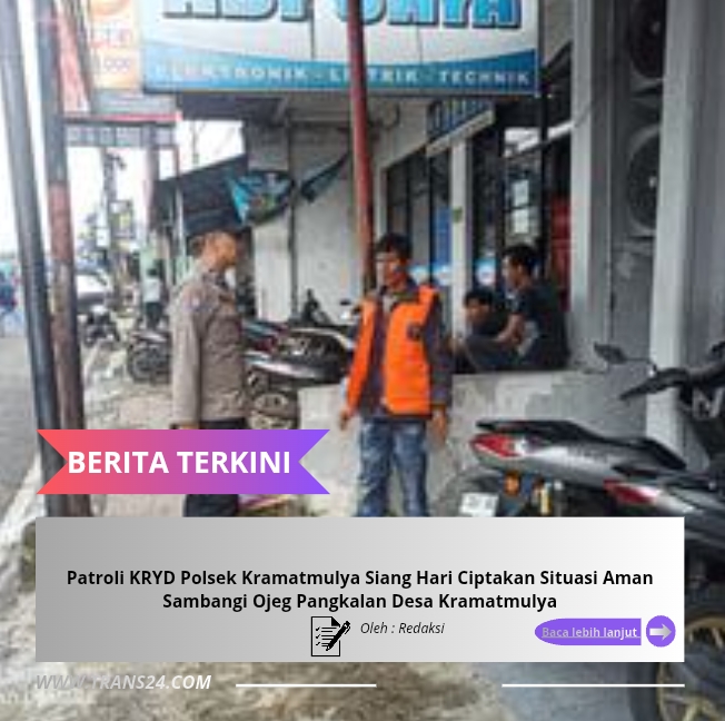 Polres Kuningan, // trans24.id – Polda Jabar –Polsek Kramatmulya Polres Kuningan Polda Jabar, Aiptu Karto dan Brigpol I Komang, melaksanakan patroli KRYD (Kegiatan Rutin Yang Ditingkatkan) cipta kondisi pada Siang hari dengan menyambangi Ojeg Pangkalan Desa Kramatmulya, Kecamatan Kramatmulya, Kabupaten Kuningan, Selasa (10/02/2026).