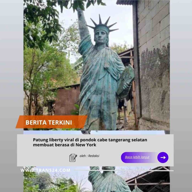 Jakarta //trans24.id Patung Liberty di kawasan Pondok Cabe, Tangerang Selatan, Banten viral di media sosial. Patung replika itu ramai karena disebut membuat Pondok Cabe berasa seperti di New York, Amerika Serikat.