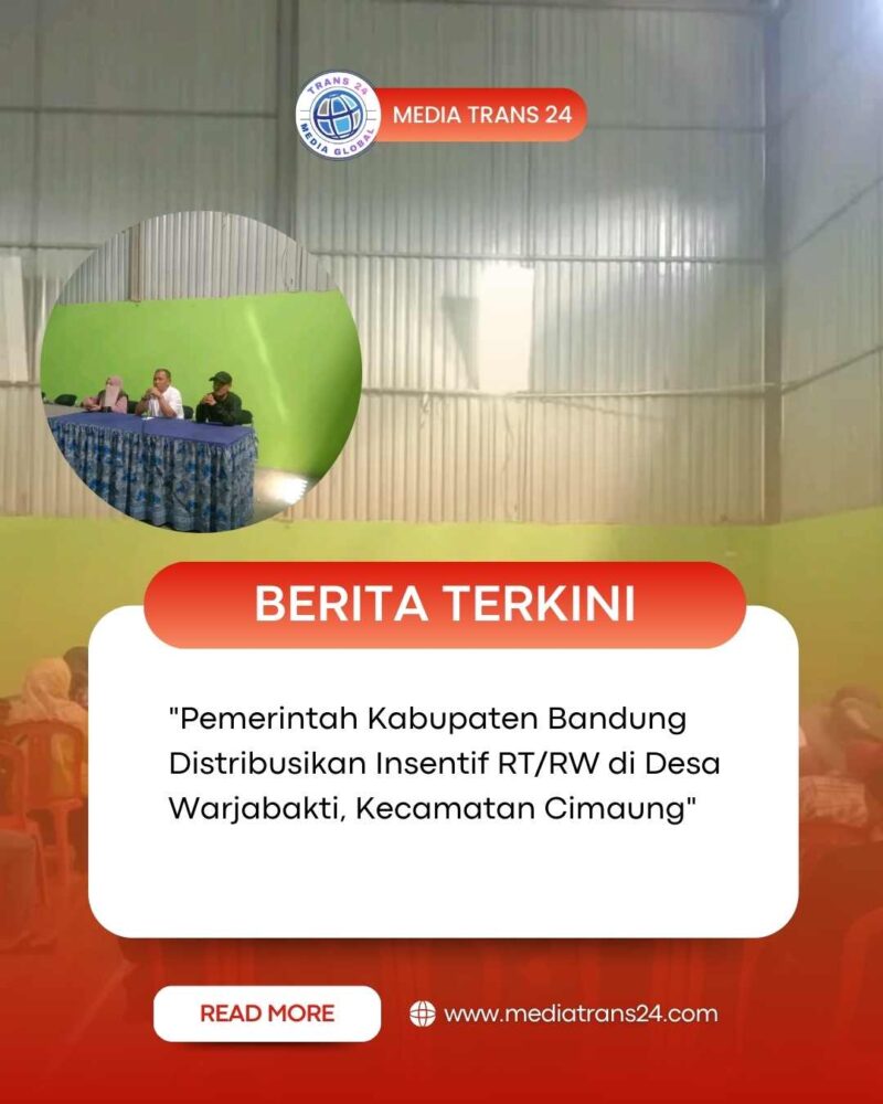 Cimaungu//trans24.id – Dalam upaya meningkatkan kinerja dan apresiasi terhadap peran vital Rukun Tetangga (RT) dan Rukun Warga (RW) sebagai ujung tombak pemerintahan di tingkat desa, Pemerintah Kabupaten Bandung melalui Kecamatan Cimaung hari ini melaksanakan kegiatan pembagian insentif. Acara ini berlangsung di Desa Warjabakti, Kecamatan Cimaung, pada Jumat, 5 Desember 2025.