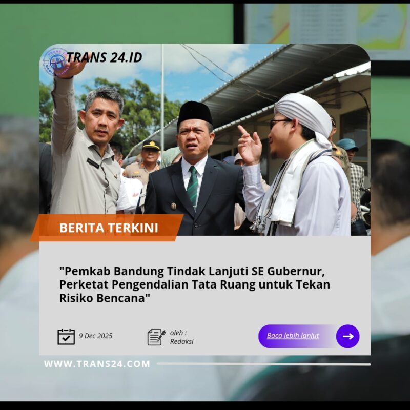 BANDUNG//trans24.id – Pemerintah Kabupaten Bandung menegaskan langkah tegas dalam pengendalian tata ruang menyusul terbitnya Surat Edaran Gubernur Jawa Barat Nomor 177/PUR.06.02.03/DISPERKIM tentang penghentian sementara penerbitan izin perumahan di wilayah Bandung Raya. Tindak lanjut tersebut dibahas dalam rapat lintas perangkat daerah pada Rabu (10/12/2025) di Soreang.
