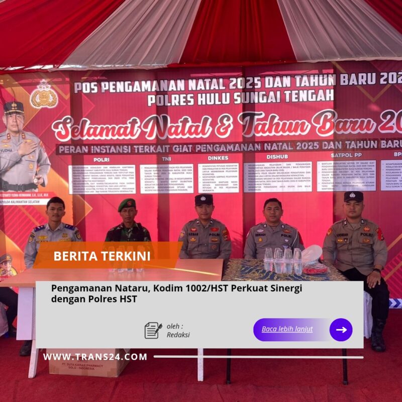 Komandan Kodim 1002/Hulu Sungai Tengah, Letkol Inf Ardiansyah Okta Putra Siregar, menegaskan bahwa pihaknya mendukung penuh langkah-langkah pengamanan yang dilaksanakan bersama Polres HST. Menurutnya, keamanan selama Natal dan Tahun Baru merupakan tanggung jawab bersama demi memastikan masyarakat dapat merayakan dengan aman dan nyaman.