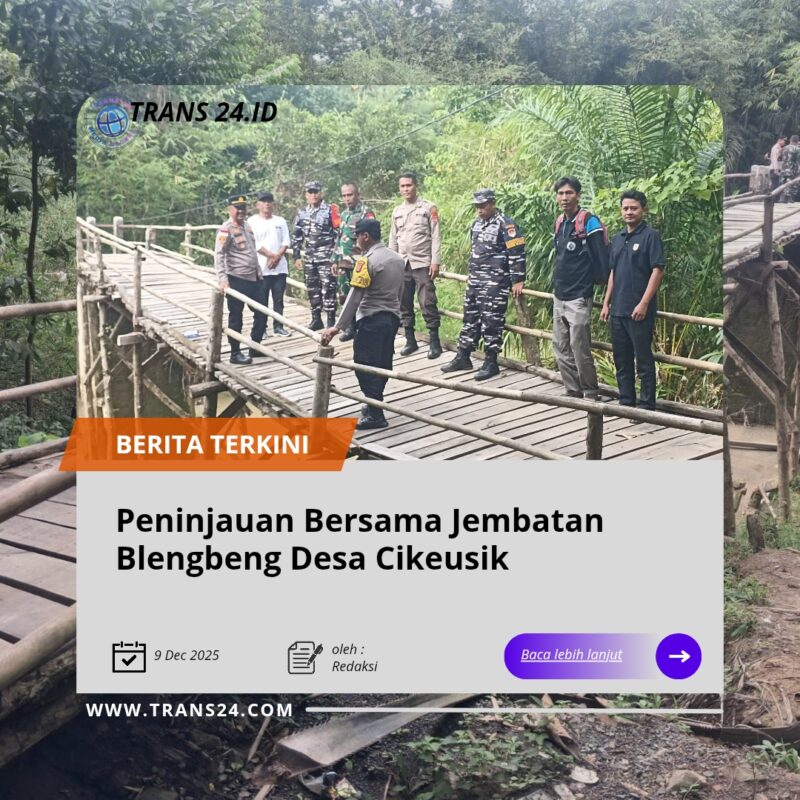 Cikeusik, Pandeglang//trans24.id –Peninjauan bersama terhadap Jembatan Blengbeng yang berada di Desa Cikeusik, Kecamatan Cikeusik, Kabupaten Pandeglang, Provinsi Banten, telah dilaksanakan pada Selasa, 9 Desember 2025. Jembatan yang ambruk pada tahun 2022 tersebut sebelumnya telah beberapa kali menjalani perbaikan sementara melalui kegiatan gotong royong masyarakat bersama TNI, Polri, serta aparat desa. Namun hingga saat ini, kondisi jembatan kembali mengalami kerusakan dan tampak miring sekitar 20 derajat.