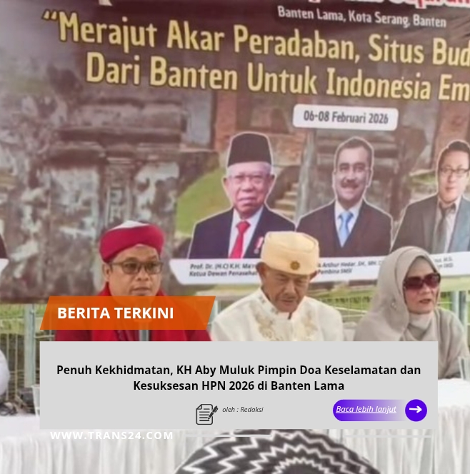 Serang, // trans24.id //-Kekhidmatan menyelimuti pembukaan agenda Ekspedisi Budaya dan Sejarah Banten sebagai rangkaian Hari Pers Nasional (HPN) 2026. Bertempat di pelataran bersejarah Banten Lama, pimpinan Pondok Pesantren Manba’ul ‘Ulum Kasuren, KH Aby Muluk, memimpin doa bersama untuk memohon keberkahan dan kesuksesan bagi seluruh insan pers nasional, Jumat (6/2/2026).