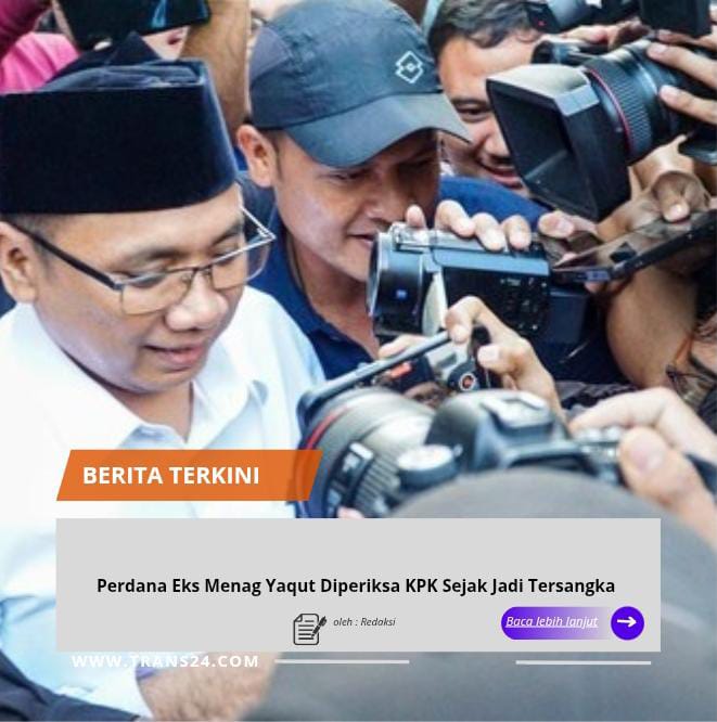 Jakarta, // trans24.id //- Mantan Menteri Agama (Menag) Yaqut Cholil Qoumas diperiksa KPK terkait kasus dugaan korupsi kuota haji. Pemeriksaan itu merupakan perdana usai Yaqut menyandang status tersangka dalam kasus tersebut.