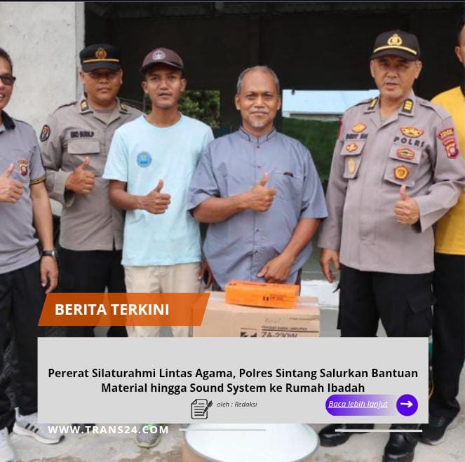 SINTANG, // trans24.id // – Polres Sintang kembali menegaskan komitmen sosialnya melalui program unggulan “Polres Sintang Berbagi” yang digelar pada Jumat pagi (06/02/2026). Aksi nyata ini menyasar sejumlah rumah ibadah dan masyarakat yang membutuhkan di wilayah Kabupaten Sintang guna mendukung kelancaran aktivitas keagamaan.