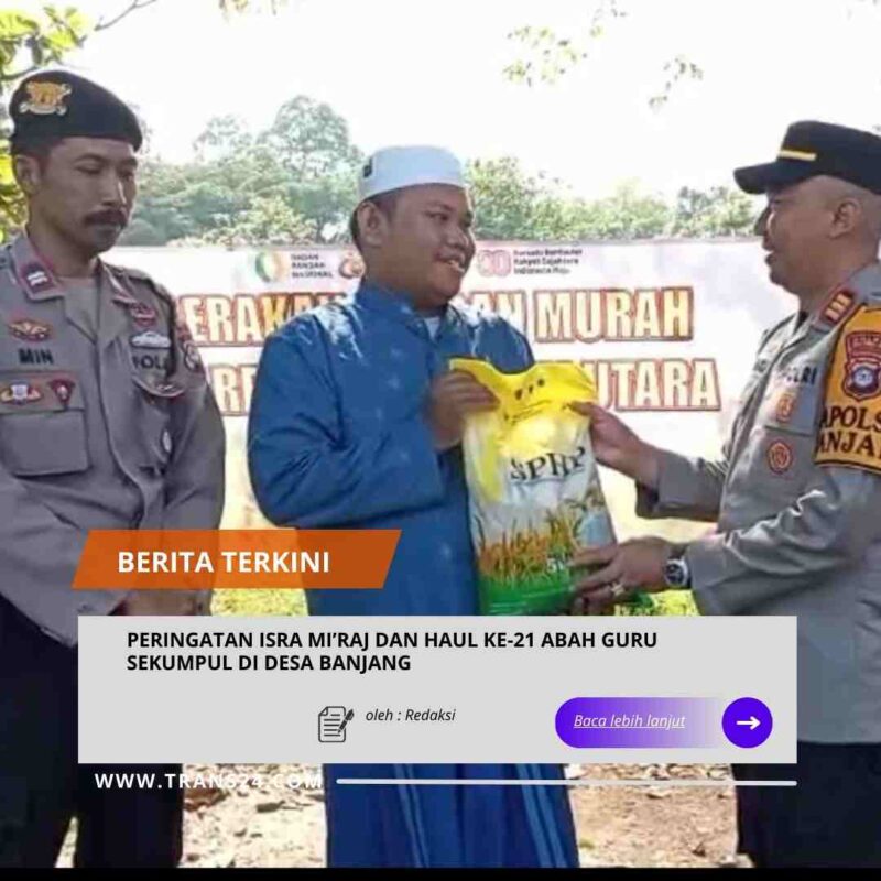 Banjang//trans24.id 04 Januari 2026 – Polsek Banjang melaporkan bahwa pada Sabtu (03/01/2026) pukul 21.00 hingga 23.00 Wita, telah sukses diselenggarakan kegiatan peringatan Isra Mi’raj Nabi Besar Muhammad SAW sekaligus peringatan Haul ke-21 Abah Guru Sekumpul bersama Guru Syarwani Abdan di Majelis Ta’lim Anwarul Hidayah Ahlul Kisa Desa Banjang, Kecamatan Banjang, Kabupaten Hulu Sungai Utara (HSU).