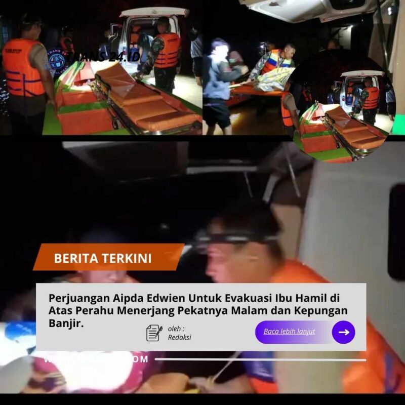 Perjuangan Aipda Edwien Untuk Evakuasi Ibu Hamil di Atas Perahu Menerjang Pekatnya Malam dan Kepungan Banjir.