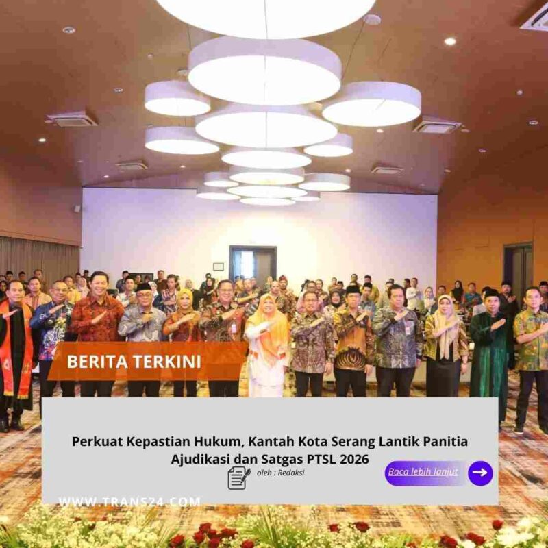 SERANG, // trans24.id //- Kantor Pertanahan (Kantah) Kota Serang resmi memulai langkah strategis dalam percepatan pendaftaran tanah di awal tahun ini. Pada Jumat (23/01/2026), dilaksanakan prosesi Pelantikan dan Pengambilan Sumpah Panitia Ajudikasi serta Satuan Tugas (Satgas) Pendaftaran Tanah Sistematis Lengkap (PTSL) Tahun Anggaran 2026.
