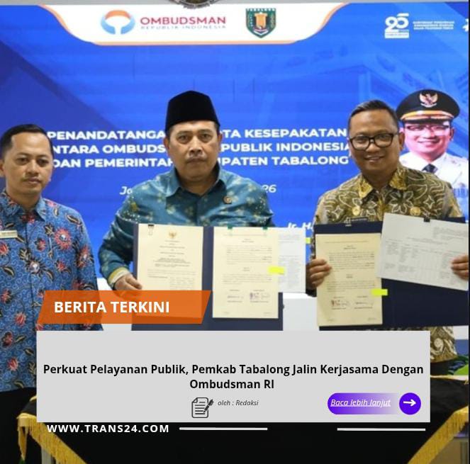 Tanjung, // trans24.id // – Pemerintah Kabupaten (Pemkab) Tabalong menandatangani naskah kerjasama dengan Ombudsman Republik Indonesia sebagai upaya memperkuat peningkatan kualitas pelayanan publik kepada masyarakat.