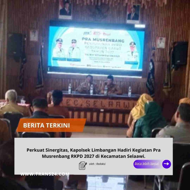 GARUT, // trans24.id // – Kepala Kepolisian Sektor (Kapolsek) Limbangan menghadiri kegiatan Pra Musyawarah Perencanaan Pembangunan (Musrenbang) dalam rangka penyusunan Rencana Kerja Pemerintah Daerah (RKPD) Kabupaten Garut Tahun 2027 tingkat Kecamatan Selaawi. Kegiatan tersebut berlangsung di Aula Kecamatan Selaawi dengan dihadiri oleh unsur Forkopimcam, para Kepala Desa, tokoh masyarakat, serta instansi terkait.