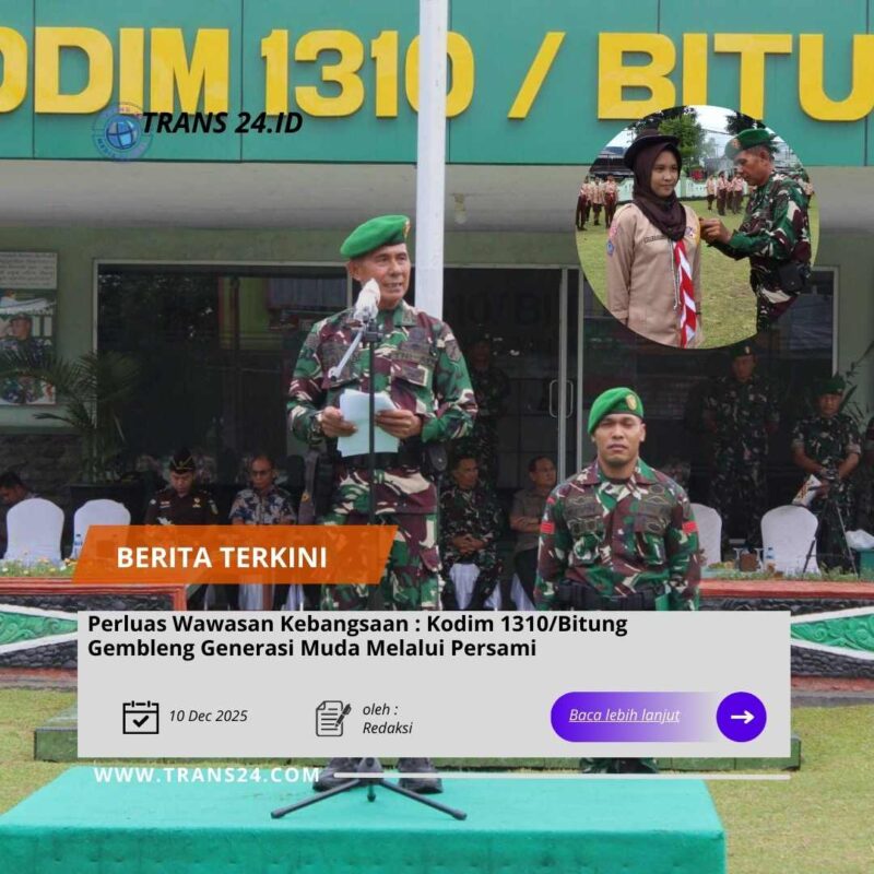 BITUNG//trans24.id  – Dalam rangka menumbuhkan rasa cinta tanah air dan memperluas wawasan kebangsaan, Korps Kadet Republik Indonesia (KKRI) menyelenggarakan Upacara Perkemahan Sabtu Minggu (Persami) Gelombang III Triwulan IV Tahun Anggaran 2025 yang berjalan dengan khidmat dan penuh semangat kebangsaan.Kegiatan yang dilaksanakan di Lapangan upacara Makodim 1310/Bitung Kel. Madidir Unet Kec. Madidir Kota Bitung. Sabtu, (13/12/2025).