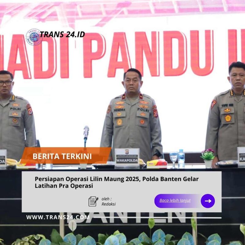 Serang//trans24.id – Polda Banten menggelar Latihan Pra Operasi Lilin Maung 2025 dengan tema “Melalui Pelatihan Pra Operasi Kita Tingkatkan Kemampuan dan Profesionalisme Polri delam Pengamanan Natal 2025 dan Tahun Baru 2026 Guna Memelihara Keamanan Dalam Negeri”. Yang bertempat di Aula Serba Guna Polda Banten pada Kamis (18/12).