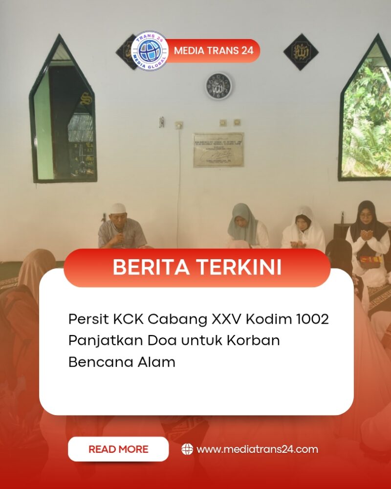 BARABAI//trans24.id -Persit Kartika Chandra Kirana (KCK) Cabang XXV Kodim 1002 Koorcab Rem 101 PD XXII/ Tambun Bungai menggelar doa bersama sebagai bentuk kepedulian dan empati atas musibah bencana alam yang terjadi di wilayah Sumatera. Kegiatan berlangsung khusyuk di Musholla Al Khairul Fahmi, Jalan Telaga Padawangan, Kelurahan Barabai Timur, Kecamatan Barabai, Kabupaten Hulu Sungai Tengah, Rabu (03/12/2025).