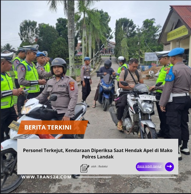 LANDAK, // trans24.id //- Suasana pagi di Mako Polres Landak mendadak berbeda. Sejumlah personel yang hendak melaksanakan apel terkejut ketika kendaraan yang mereka gunakan justru dihentikan dan dilakukan pemeriksaan kelengkapan surat-surat oleh Anggota Satuan Lalu Lintas (Satlantas) bersama Anggota Propam Polres Landak, Kamis (5/2/2026).