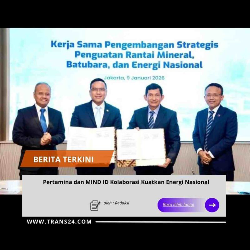 Jakarta//trans24.id PT Pertamina (Persero) bersama holding industri pertambangan MIND ID berkolaborasi strategis dalam mendukung visi Asta Cita Presiden Prabowo Subianto untuk memperkuat ketahanan dan kemandirian energi nasional.