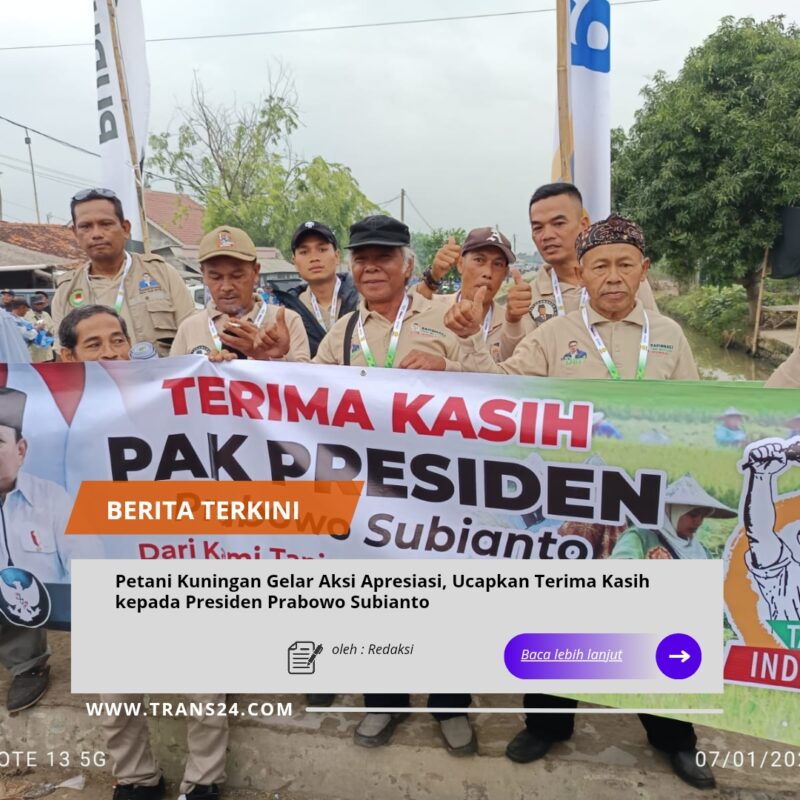 JAWA BARAT //trans24.id Hamparan semangat dan rasa syukur menyatu di tengah lapangan terbuka Kabupaten Kuningan. Ratusan petani yang tergabung dalam komunitas Tani Merdeka Indonesia (TMI) Kabupaten Kuningan menggelar aksi apresiasi sebagai bentuk ucapan terima kasih kepada Presiden Republik Indonesia, Prabowo Subianto, atas perhatian dan kebijakan pemerintah yang dinilai berpihak kepada petani.