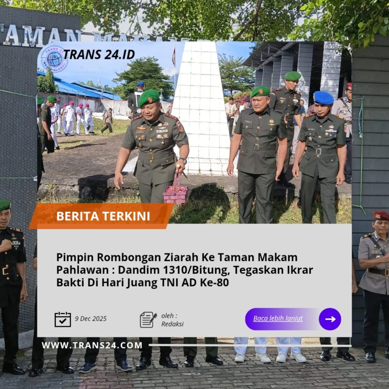 BITUNG//trans24.id  – Dalam rangka memperingati Hari Juang TNI AD ke 80 Tahun 2025, Dandim 1310/Bitung Letkol Inf Dewa Made DJ., pimpin langsung rombongan Ziarah Rombongan Di Taman Makam Pahlawan (TMP), Jl. Sam Ratulangi, Kel. Kadoodan, Kec. Maesa Kota Bitung. Kamis, (11/12/2025).