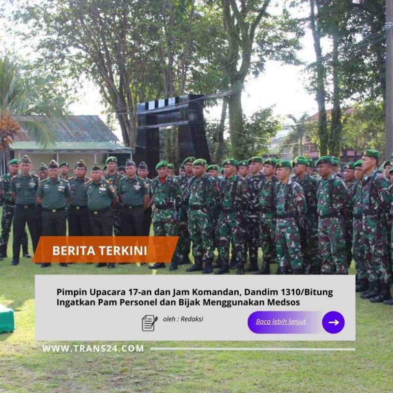 BITUNG, // trans24.id //-Kodim 1310/Bitung menggelar upacara bendera tanggal 17 sebagai wujud penghormatan terhadap nilai-nilai perjuangan bangsa sekaligus sarana pembinaan disiplin dan jiwa nasionalisme prajurit.