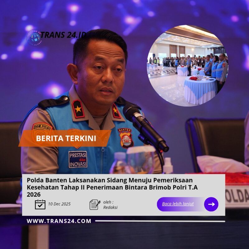 Serang//trans24.id – Polda Banten menggelar sidang menuju Pemeriksaan Kesehatan Tahap II Penerimaan Bintara Brimob Polri T.A 2026 bertempat di Aula Gawe Kuta Baluwarti Polda Banten pada Kamis (11/12).