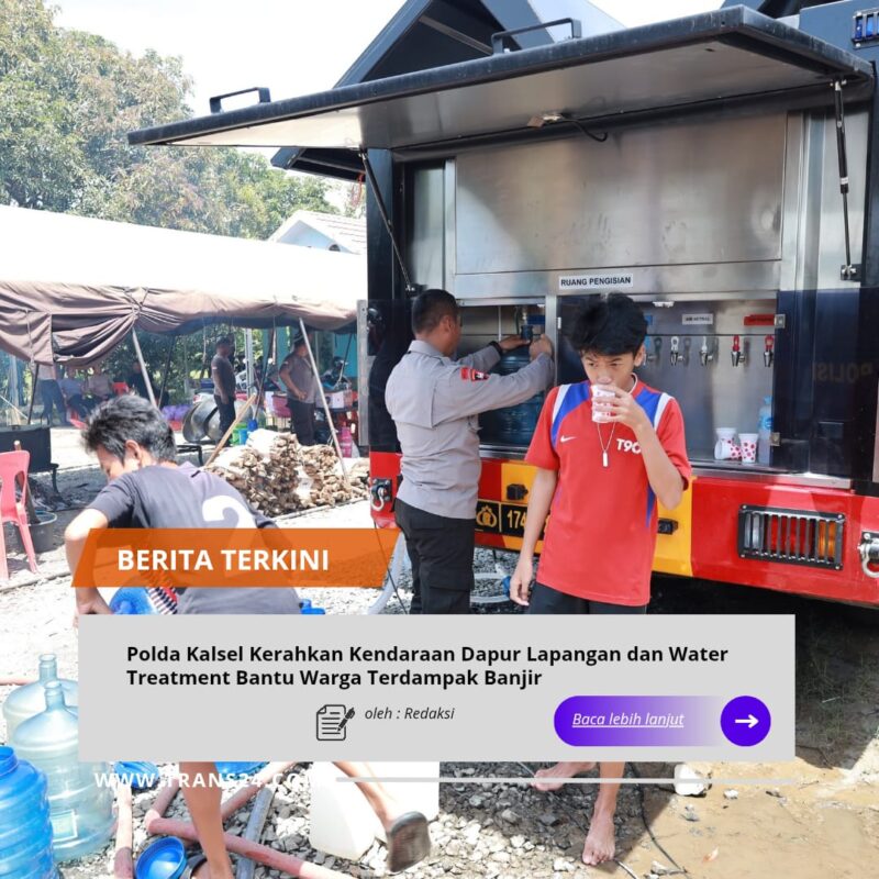 Polda Kalsel Kerahkan Kendaraan Dapur Lapangan dan Water Treatment Bantu Warga Terdampak Banjir