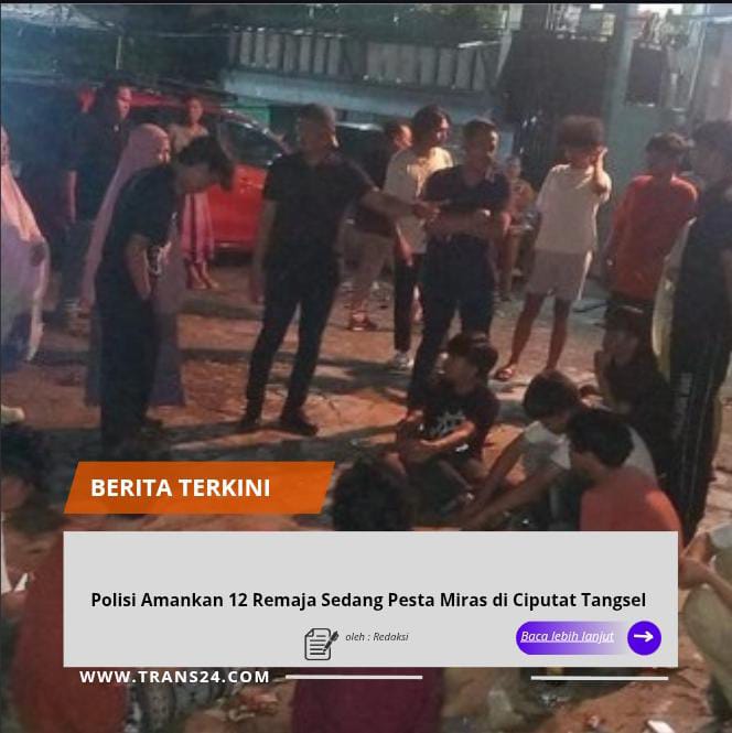 Jakarta, // trans24.id // – Polisi mengamankan 12 remaja sedang pesta minuman keras (miras) di Jalan KH Dewantoro, Ciputat, Tangerang Selatan (Tangsel). Orang tua (ortu) para remaja tersebut dipanggil ke lokasi.