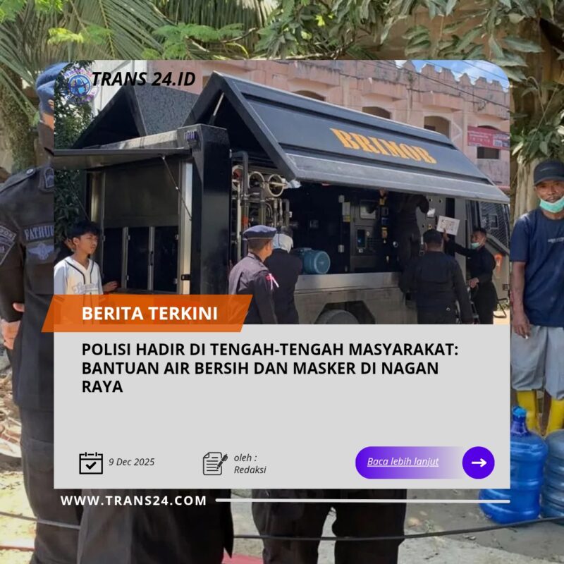 Aceh//porpamnewstv.id – Polisi kembali menunjukkan komitmennya dalam membantu masyarakat terdampak banjir di Kabupaten Nagan Raya, Provinsi Aceh. Aksi ini merupakan respons cepat atas kondisi warga yang kesulitan mengakses air layak konsumsi sejak banjir melanda wilayah tersebut.