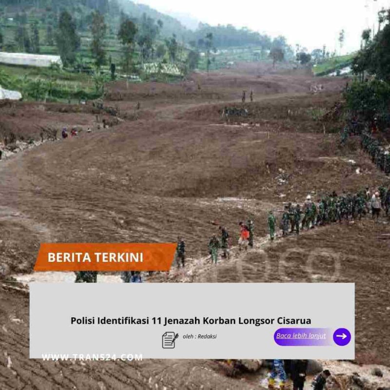 Cisarua, // trans24.id //- Berdasarkan data per Ahad, 25 Januari 2026, tim gabungan pencarian telah mengevakuasi total 25 kantong jenazah korban tanah longsor yang melanda Kampung Babakan Cibudah, Desa Pasirlangu, Kecamatan Cisarua, Kabupaten Bandung Barat, Jawa Barat. Dari 25 jenazah itu, tim Disaster Victim Identification (DVI) berhasil mengidentifikasi sebanyak sebelas korban.