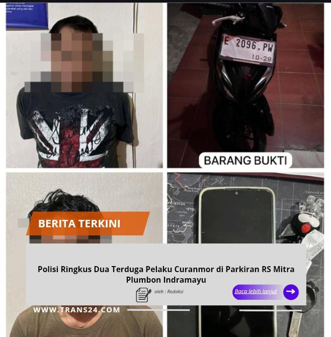 Indramayu, //trans24.id//— Kepolisian berhasil mengungkap kasus pencurian kendaraan bermotor (curanmor) yang terjadi di area parkir RS Mitra Plumbon, Kecamatan Widasari, Kabupaten Indramayu. Dalam pengungkapan tersebut, dua orang terduga pelaku berhasil diamankan.