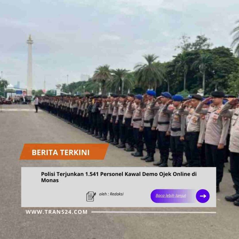 Jakarta//trans24.id – Sebanyak 1.541 personel gabungan dikerahkan untuk mengamankan aksi unjuk rasa pengemudi ojek online (ojol) di kawasan Monas dan Kedutaan Besar Amerika Serikat, Jakarta Pusat, Rabu, 14 Januari 2026. Pengamanan ini bertujuan untuk menjamin kelancaran penyampaian aspirasi agar tetap berjalan tertib dan kondusif.