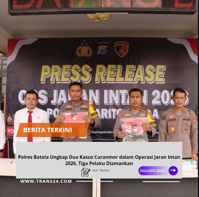Marabahan, //trans24.id// – 9 Februari 2026 — Kepolisian Resor (Polres) Barito Kuala kembali menunjukkan komitmennya dalam memberantas tindak kriminalitas melalui pengungkapan dua kasus pencurian kendaraan bermotor (curanmor) dalam rangka Operasi Jaran Intan 2026.