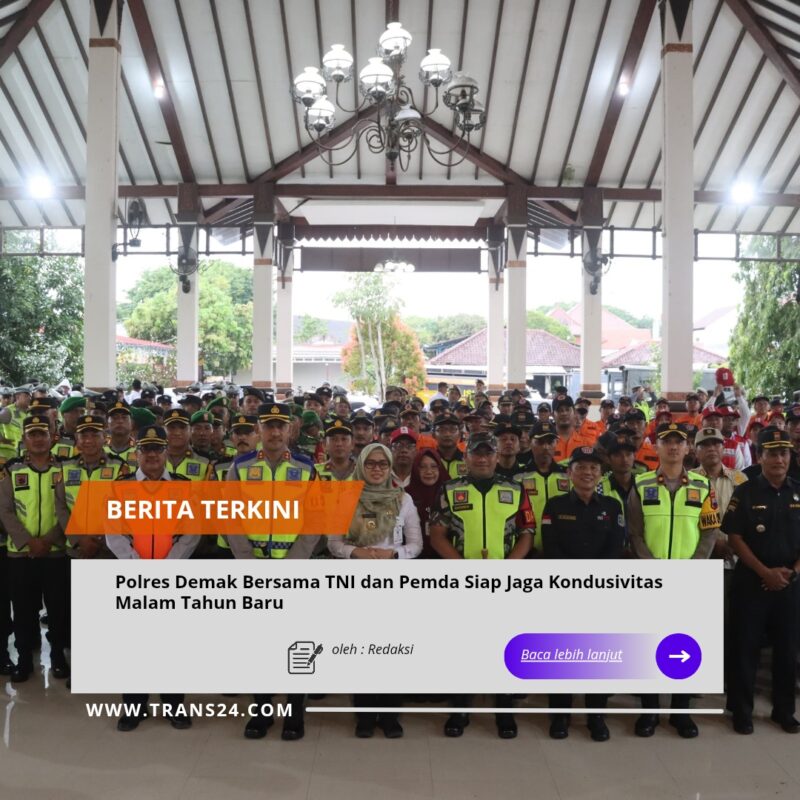 Demak//trans24.id – Kepolisian Resor (Polres) Demak, Jawa Tengah, menggelar Apel Gelar Pasukan Gabungan Pengamanan Malam Tahun Baru 2026 di Pendopo Parama Satwika Mapolres Demak, Rabu (31/12/2025) sore. Kegiatan ini dilaksanakan sebagai bentuk kesiapan seluruh unsur dalam menjaga keamanan dan ketertiban masyarakat menjelang pergantian tahun.