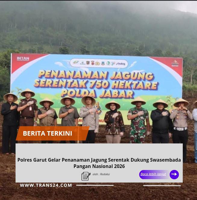 Garut, // trans24.id //– Dalam rangka mendukung program Swasembada Pangan Nasional Tahun 2026, Polres Garut melaksanakan kegiatan Penanaman Jagung Serentak yang bertempat di Jl. Ibrahim Adjie, Kp. Cileungsi, Desa Pasawahan, Kecamatan Tarogong Kaler, Kabupaten Garut, pada hari ini, Kamis (29/1/2026).
