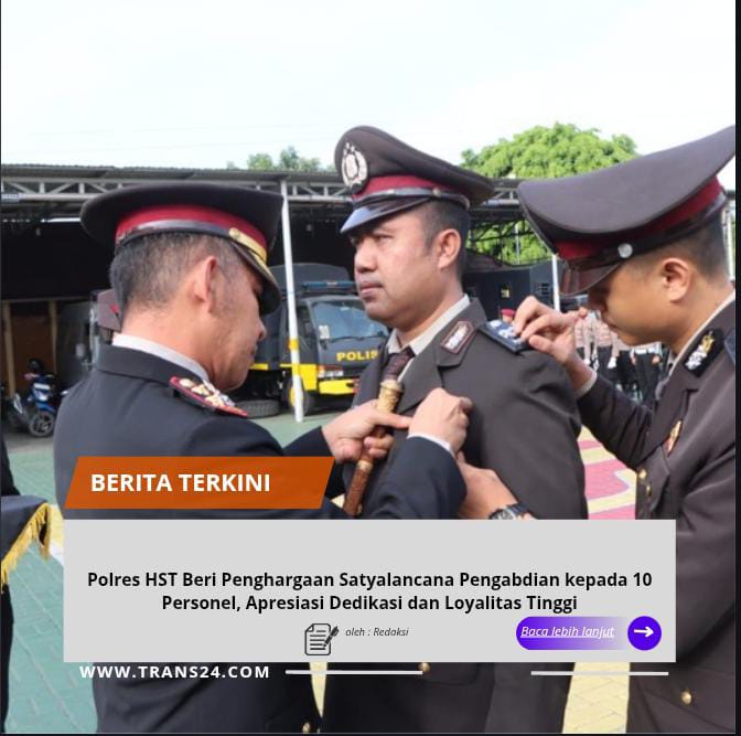 Polres Hulu Sungai Tengah Polda Kalsel, // trans24.id //- Suasana khidmat dan penuh kebanggaan menyelimuti halaman Mapolres Hulu Sungai Tengah saat digelarnya Upacara Penganugerahan Tanda Kehormatan Satyalancana Pengabdian kepada sejumlah personel Polres HST, Jum’at (30/01/2026).