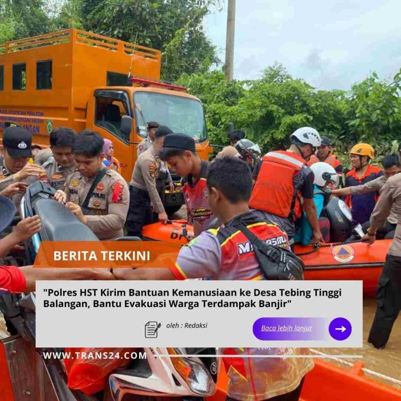 Polres Hulu Sungai Tengah Polda Kalimantan Selatan//trans24.id  – Polres Hulu Sungai Tengah (HST) menunjukkan solidaritas dan kepedulian tinggi terhadap sesama dengan mengerahkan Tim Bantuan Kemanusiaan untuk membantu penanganan bencana banjir di Desa Tebing Tinggi, Kabupaten Balangan.