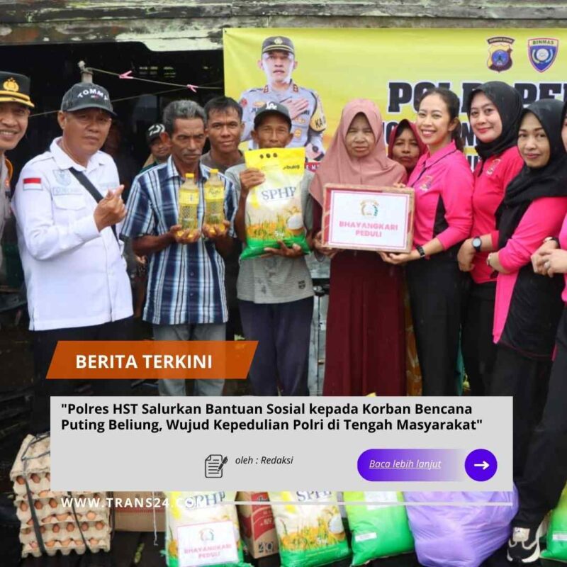 Polres Hulu Sungai Tengah Polda Kalimantan Selatan//trans24.id  – Polres HST menunjukkan kepedulian dan empati kepada masyarakat yang terdampak bencana alam puting beliung yang melanda Desa Sungai Buluh, Kecamatan Labuan Amas Utara dan Desa Kambat Utara, Kecamatan Pandawan, Kabupaten Hulu Sungai Tengah.