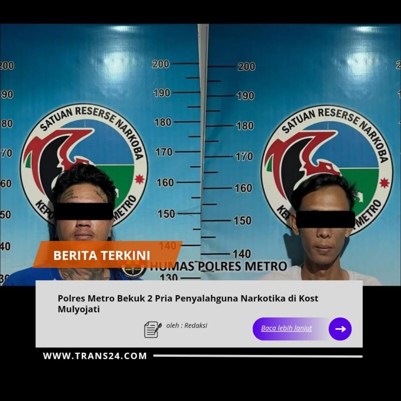 Metro, // trans24.id //– Satuan Reserse Narkoba Polres Metro berhasil mengungkap kasus tindak pidana narkotika dengan mengamankan dua orang pria di sebuah rumah kost yang berada di Kelurahan Mulyojati, Kecamatan Metro Barat, Kota Metro, Senin (19/1/2026) sekitar pukul 13.00 WIB.