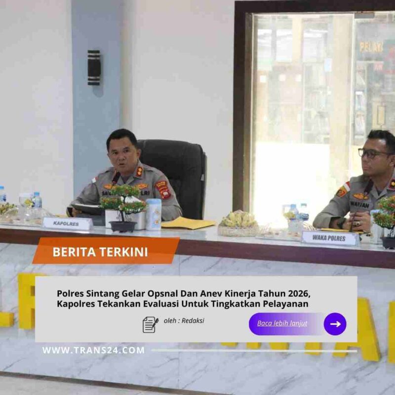 SINTANG, // trans24.id //– Polres Sintang menggelar kegiatan Gelar Operasional dan Analisa serta Evaluasi Kinerja Tahun 2025-2026 pada Rabu pagi, (21/1/2026), di Aula Polres Sintang.